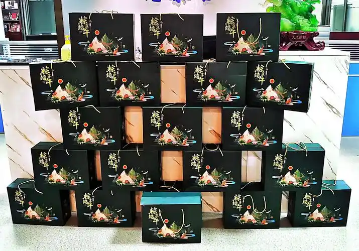 粽子礼盒选用了知名品牌,包装精美,设计融入了端午元素,洋溢着浓浓的节日氛围。礼盒内的粽子口味丰富多样,有咸香可口的五花肉粽,软糯香甜的豆沙粽,还有独具特色的蛋黄粽,满足了不同员工的口味需求。每一颗粽子都选用优质食材,经过精心烹制,口感软糯,香气扑鼻。